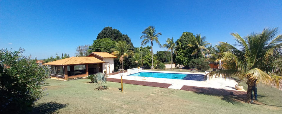 Chácara localizada em Condomínio, Terreno com 4.120 metros 537 metros de área construída, Casa sede térrea toda avarandada ,com 5 suítes, sala de estar, sala de jantar, cozinha planejada, banheiro social, 4 quartos de hóspedes com 2 banheiros, + 2 suítes externas, quarto de despejo, espaço gourmet completo com sala de tv, pomar, toda gramada, piscina aquecida, campo de futebol, poço artesiano, aquecimento solar na casa sede, toda murada e paisagismo completo. Estuda veiculo de menor valor como parte de pagamento.